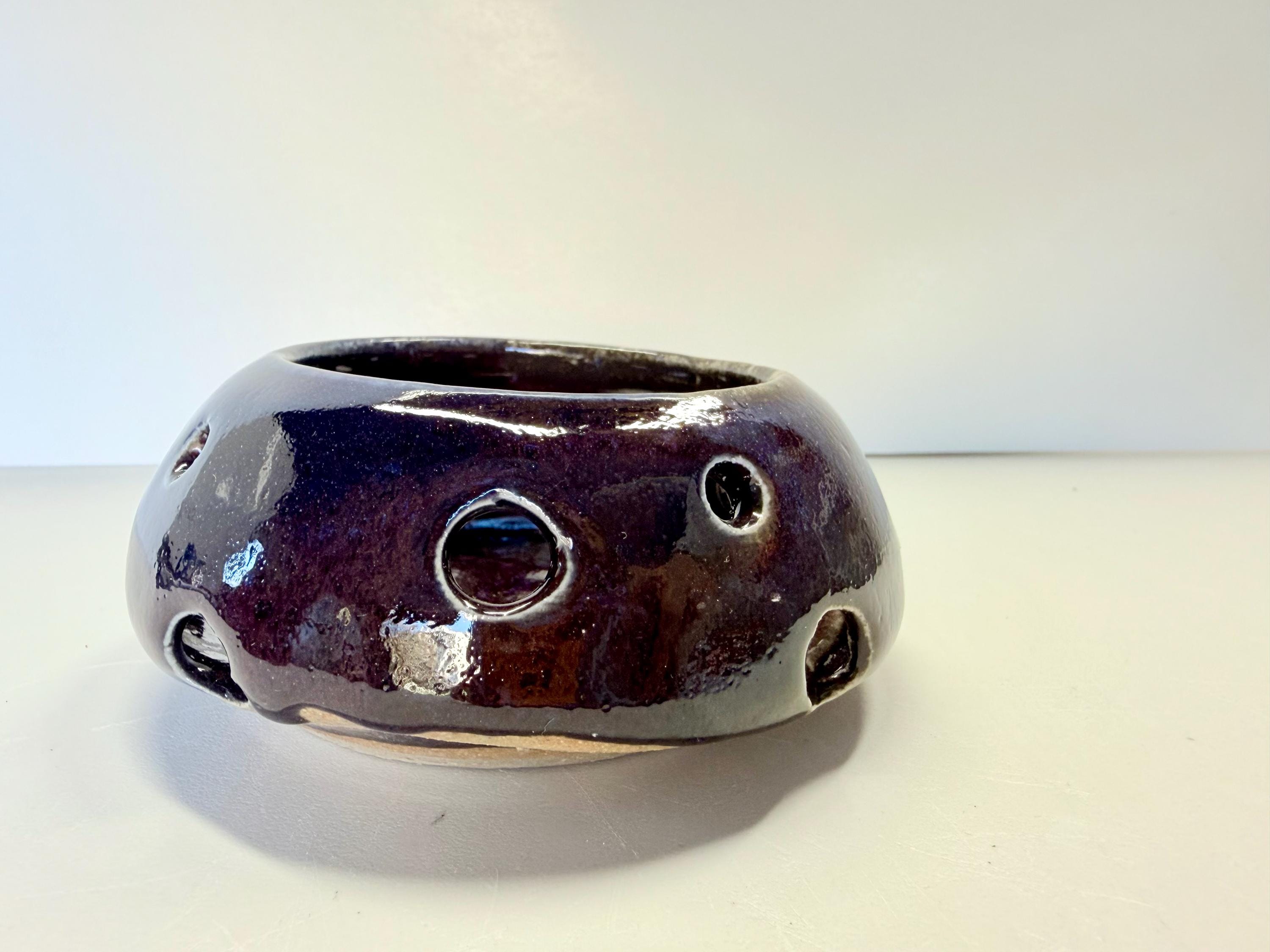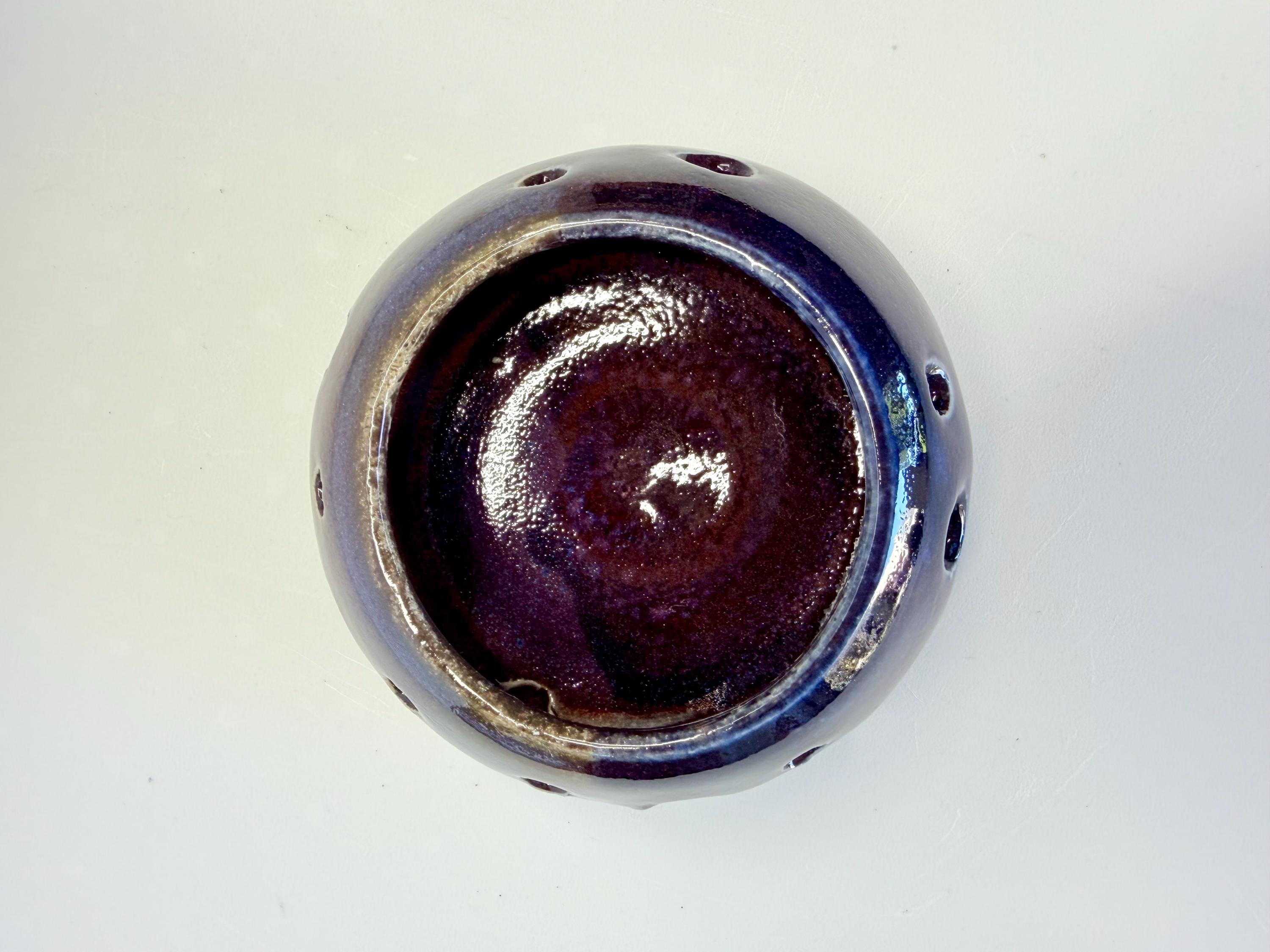 Candle and incense holder, dark purple glaze