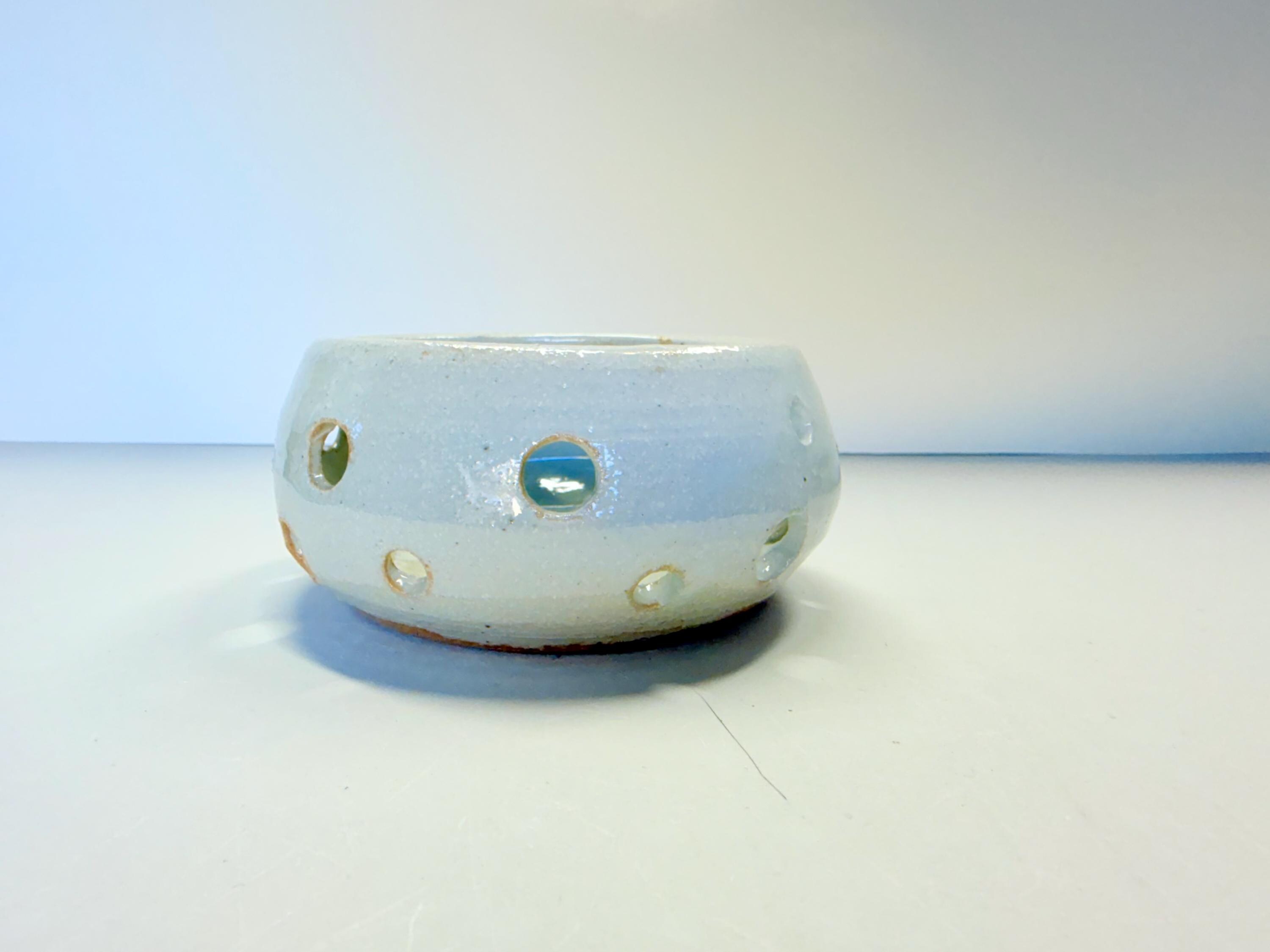 Candle and incense holder glazed matte white on white clay