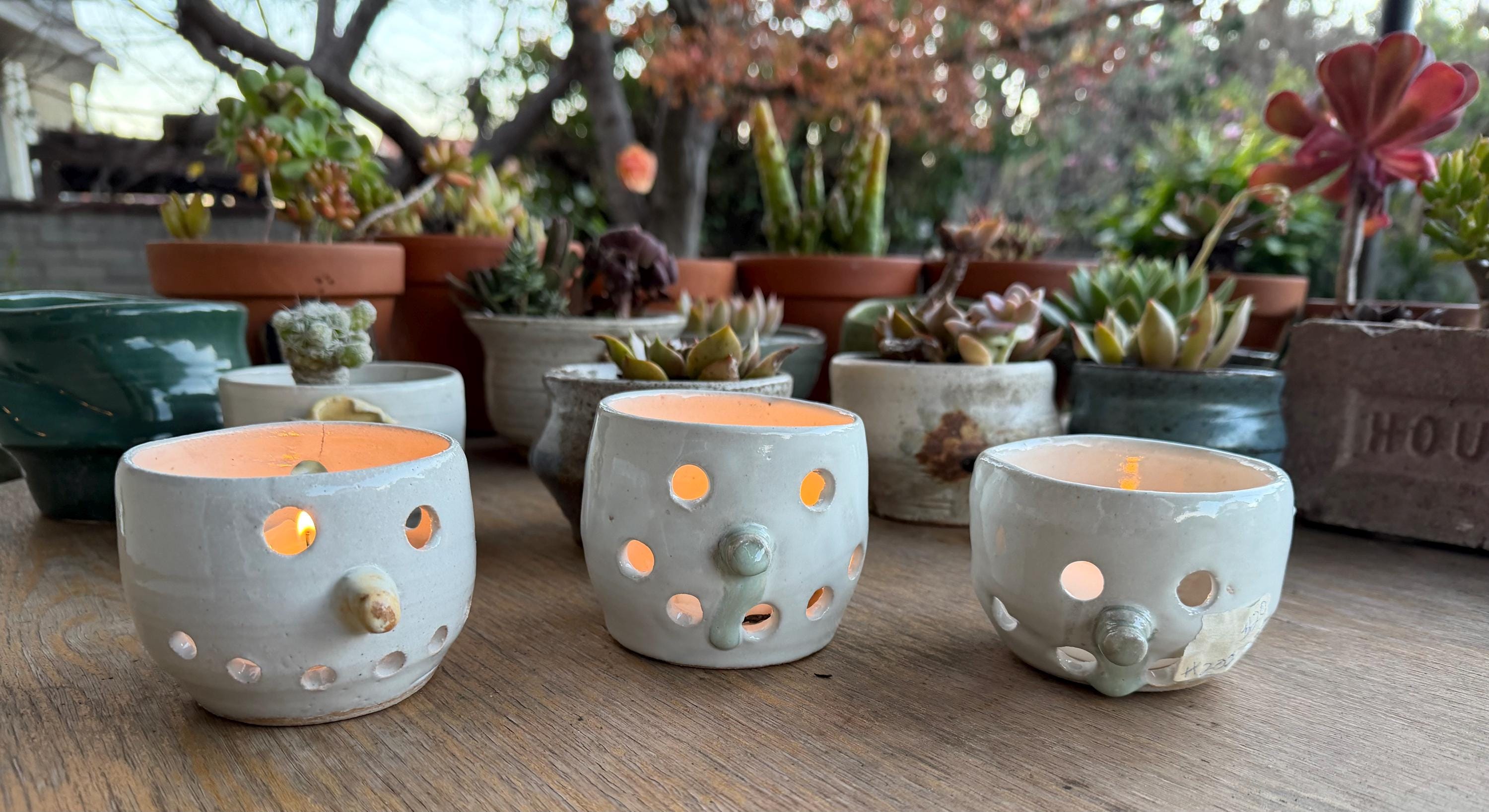 Snow people candle holder and incense holder on sale. White glaze on white clay. I use these through the Winter. I sell alot of these at Holiday shows. And, normally people buy 2-3 at a time for a collection.